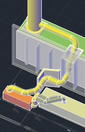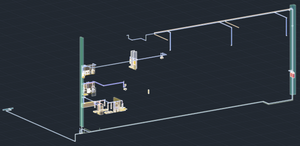 Das gesamte Ausführung des Leitungsnetzes wurde unter Berücksichtigung der statischen Erfordernisse in 3D in AutoCAD geplant.